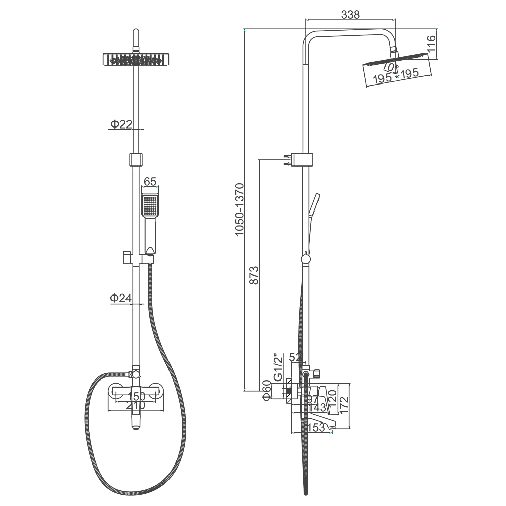 | Форма верхнего душа | квадратная |