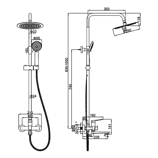 Комплектация товара Душевая стойка со смесителем Ledeme L2491BR зависит от конкретной поставки и может меняться поставщиком без предварительного уведомления!