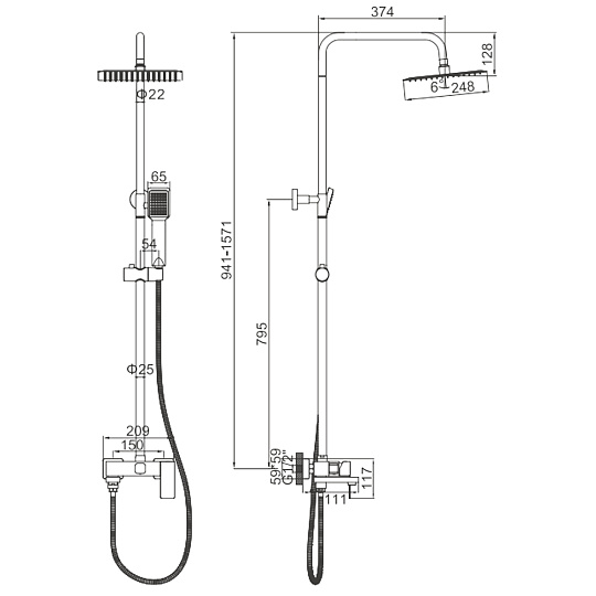 | Размер верхнего душа, см | 25 |