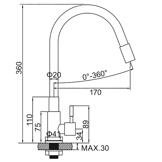| Вращение излива | поворотный |