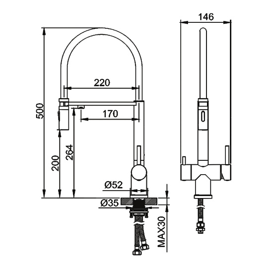 Смеситель для кухни с гибким изливом Gerhans K14390Y-2
