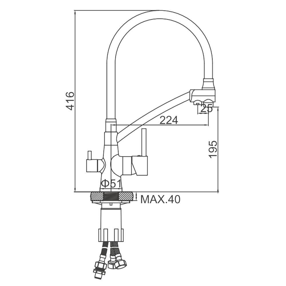 Смеситель для кухни с гибким изливом Ledeme L4955Y-2