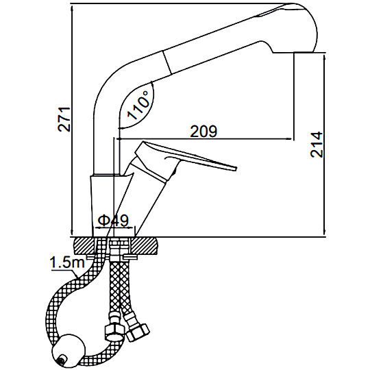 | Вращение излива | поворотный |