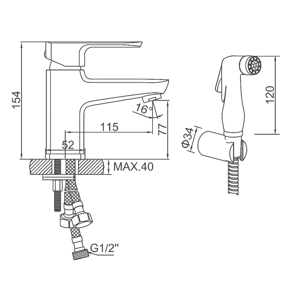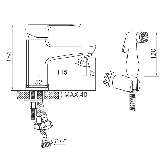 | Комплектация | гибкая подводка, гигиеническая лейка, душевой шланг, смеситель |