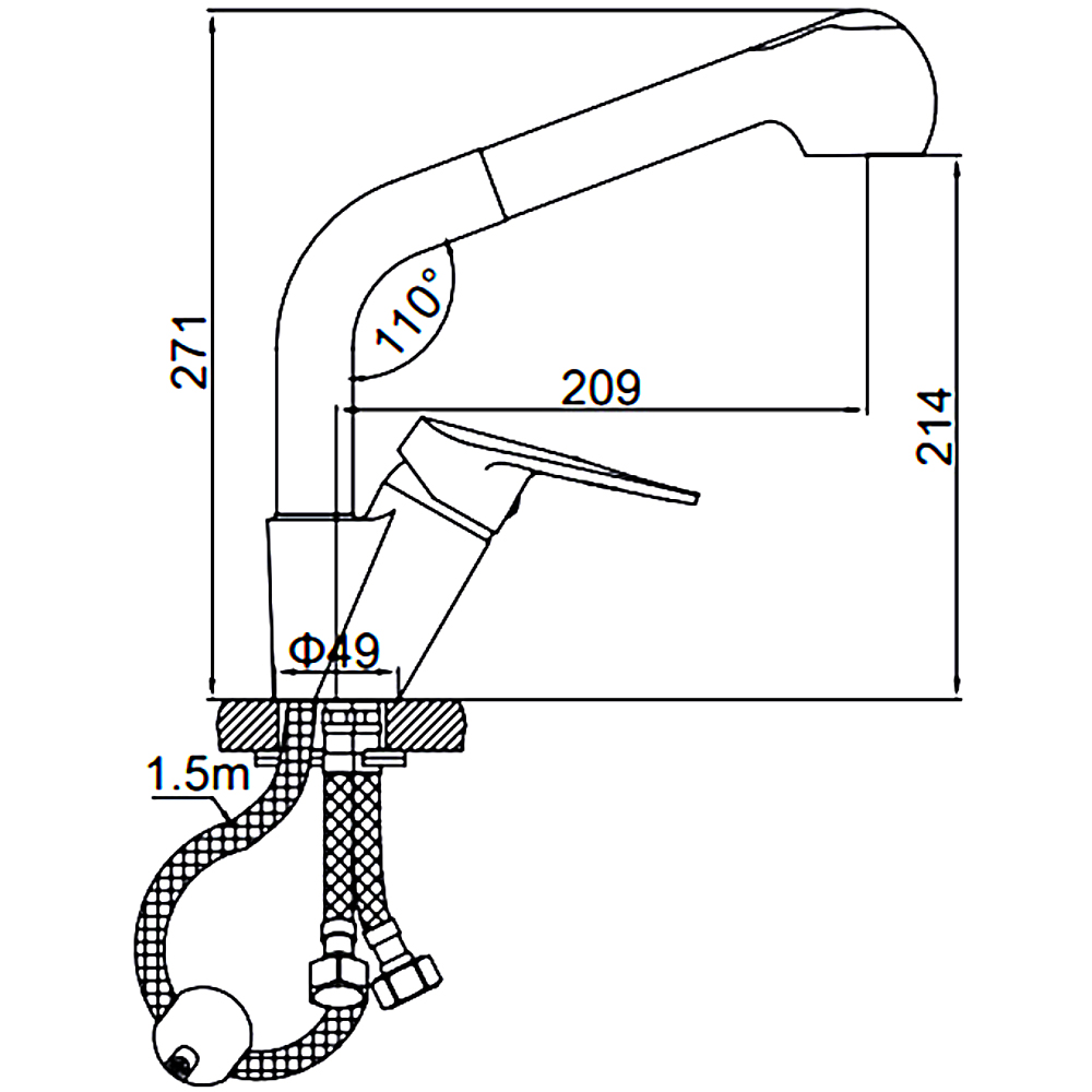 | Комплектация | гибкая подводка, противовес, смеситель |